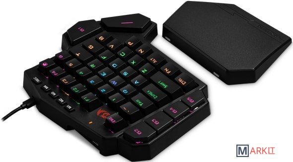 Игровая клавиатура для одной руки, для профи и тех, кто собирается ими стать! Механические переключатели OUTEMU Blue, увеличенный ресурс нажатия клавиш, кнопка записи и редактор макросов, встроенная память, удобная текстурная подставка под запястье, а также стильный дизайн!Программируемая RGB подсветкаВстроенная память сохраняет настройки режимов подсветки и макросыВлагоустойчивая конструкция клавиатуры